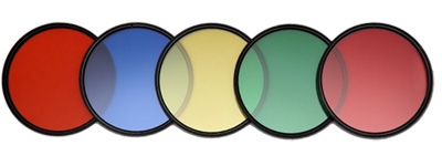 Blaufilter , Gelbfilter , Rotfilter ,Grünfilter und Orangefilter